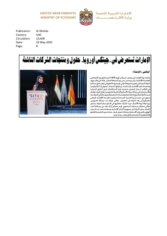 Publication: Al Wahda Country: UAE Circulation: 19,400 Date: 22 May 2025 Page: 8