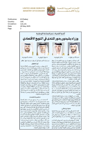 Publication: Al Khaleej Country: UAE Circulation: 121,141 Date: 20 May 2025 Page: 3