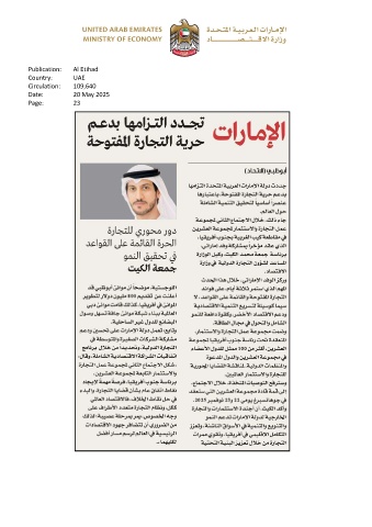 Publication: Al Etihad Country: UAE Circulation: 109,640 Date: 20 May 2025 Page: 23