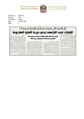Publication: Al Watan Country: UAE Circulation: 83,000 Date: 20 May 2025 Page: 1