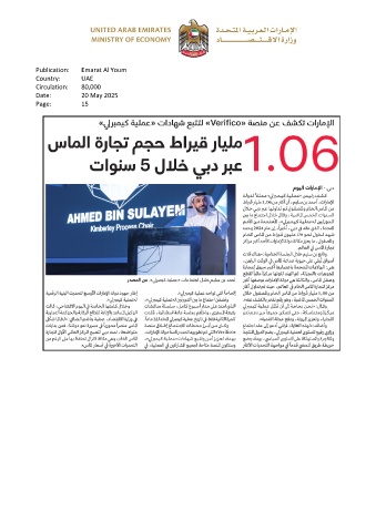 Publication: Emarat Al Youm Country: UAE Circulation: 80,000 Date: 20 May 2025 Page: 15