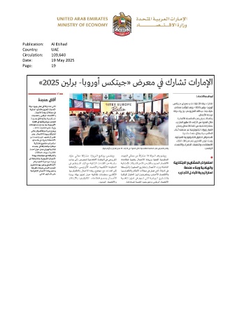 Publication: Al Etihad Country: UAE Circulation: 109,640 Date: 19 May 2025 Page: 19