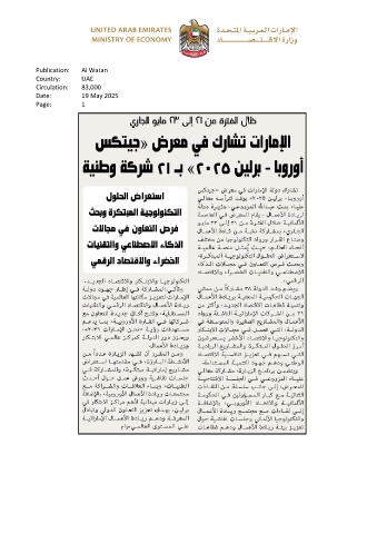 Publication: Al Watan Country: UAE Circulation: 83,000 Date: 19 May 2025 Page: 1