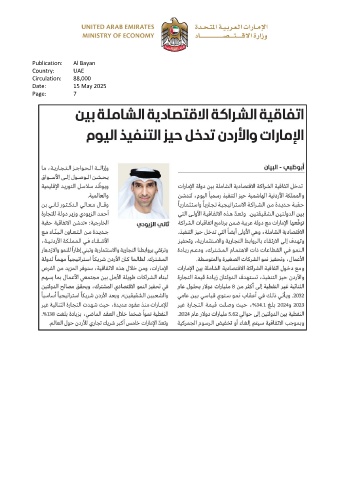 Publication: Al Bayan Country: UAE Circulation: 88,000 Date: 15 May 2025 Page: 7