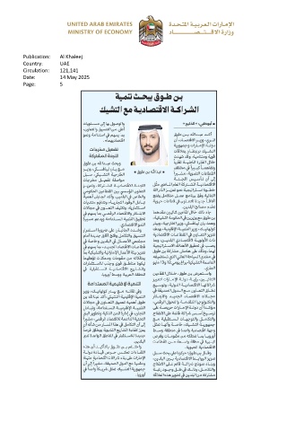 Publication: Al Khaleej Country: UAE Circulation: 121,141 Date: 14 May 2025 Page: 5