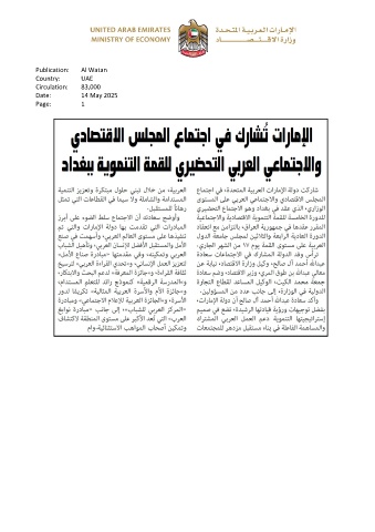 Publication: Al Watan Country: UAE Circulation: 83,000 Date: 14 May 2025 Page: 1
