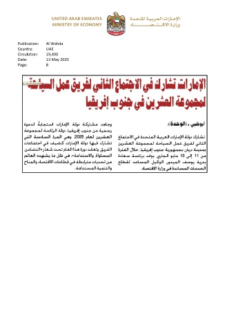 Publication: Al Wahda Country: UAE Circulation: 19,400 Date: 13 May 2025 Page: 8
