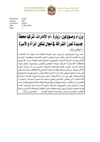 Publication: Al Fajr Country: UAE Circulation: 34,596 Date: 12 May 2025 Page: 1