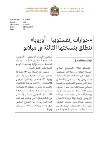 Publication: Al Etihad Country: UAE Circulation: 109,640 Date: 12 May 2025 Page: 17