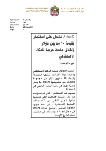 Publication: Al Wahda Country: UAE Circulation: 19,400 Date: 12 May 2025 Page: 7