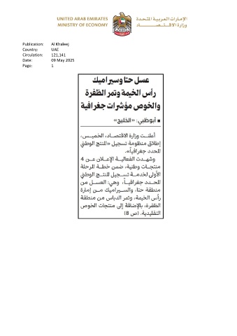 Publication: Al Khaleej Country: UAE Circulation: 121,141 Date: 09 May 2025 Page: 1