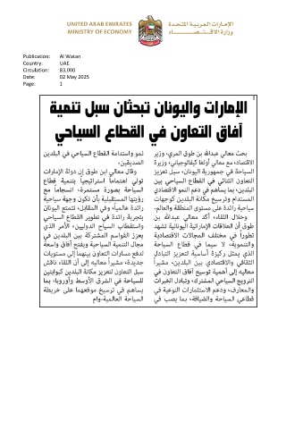 Publication: Al Watan Country: UAE Circulation: 83,000 Date: 02 May 2025 Page: 1