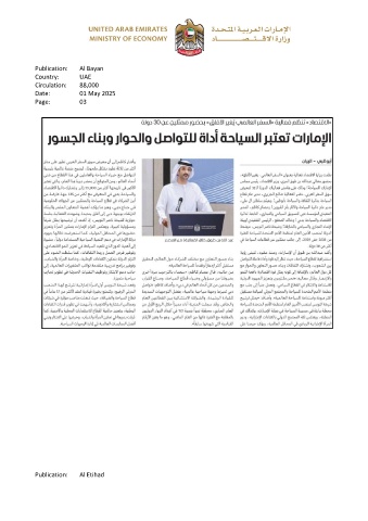 Publication: Al Bayan Country: UAE Circulation: 88,000 Date: 01 May 2025 Page: 03 Publication: Al Etihad