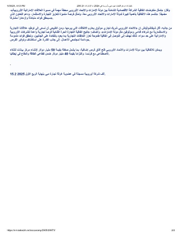 يذﻟا نوﺎﻌﺗﻟا مﻋدو ،رﺎﻣﺛﺗﺳﻻاو ةرﺎﺟﺗﻟا زﯾزﻌﺗﻟ ةزﯾﻣﺗﻣ ﺔﺻرﻓ لﺛﻣﺗو ،ًﺎﻌﻣ ﻲﺑوروﻷا دﺎﺣﺗﻻاو تارﺎﻣﻹا ﺔﻟودﻟ ةرﯾﺑﻛ ﺔﯾﻣھﺄﺑ ﺔﯾﻗﺎﻔﺗﻻا هذھ مﺳﺗﺗ» :ًﺎﻔﯾﺿﻣ