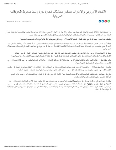 نﺄﺷﺑ تﺎﺿوﺎﻔﻣ ﺎﯾﻣﺳر ﺎﻘﻠطأ ةدﺣﺗﻣﻟا ﺔﯾﺑرﻌﻟا تارﺎﻣﻹا ﺔﻟودو ﻲﺑوروﻷا دﺎﺣﺗﻻا نأ ءﺎﻌﺑرﻷا موﯾ ﺔﯾﺑوروﻷا ﺔﯾﺿوﻔﻣﻟا تﻧﻠﻋأ (اوﺧﻧﯾﺷ) 2025 وﯾﺎﻣ 28 لﺳﻛورﺑ