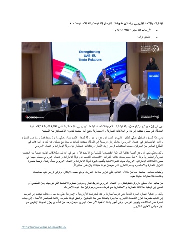 ةيداصتقلاا ةكارشلا ةيقافتا نأشب امهتاضوافم يبورولأا داحتلااو ةدحتملا ةيبرعلا تاراملإا ةلود لصاوت / ماو / ويام 28 يف يبد