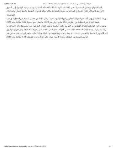 ﺖﻐﻠﺑو .ﺔﻴﻄﻔﻨﻟا ﺮﻴﻏ ةرﺎﺠﺘﻟا ﻞﻤﺠﻣ ﻦﻣ %8.3 ﻞﺜﻤﻳ ﺚﻴﺣ ،تارﺎﻣإلا ﺔﻟوﺪﻟ ﻦﻴﻳرﺎﺠﺘﻟا ءﺎﻛرشﻟا ﻢﻫأ ﺪﺣأ ﻲﺑوروألا دﺎﺤﺗالا ﺪﻌﻳو