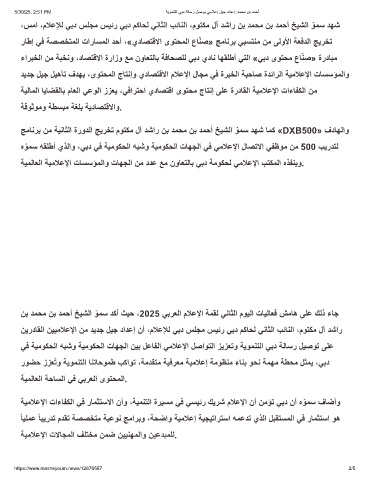 نﺑ دﻣﺣﻣ نﺑ دﻣﺣأ ﺦﯾﺷﻟا ّ وﻣﺳ دﻛأ ثﯾﺣ ،2025 ﻲﺑرﻌﻟا مﻼﻋﻹا ﺔﻣﻘﻟ ﻲﻧﺎﺛﻟا موﯾﻟا تﺎﯾﻟﺎﻌﻓ شﻣﺎھ ﻰﻠﻋ كﻟذ ءﺎﺟ