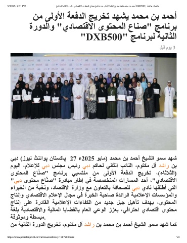 5/30/25, 2:51 PM ﺞﻣﺎﻧرﺑﻟ ﺔﯾﻧﺎﺛﻟا ةرودﻟاو يدﺎﺻﺗﻗﻻا ىوﺗﺣﻣﻟا عﺎﻧﺻ ﺞﻣﺎﻧرﺑ نﻣ ﻰﻟوﻷا ﺔﻌﻓدﻟا ﺞﯾرﺧﺗ دﮭﺷﯾ دﻣﺣﻣ نﺑ دﻣﺣأ DXB500 | ٹﻧﺋاوﺑ نﺎﺗﺳﮐﺎﺑ