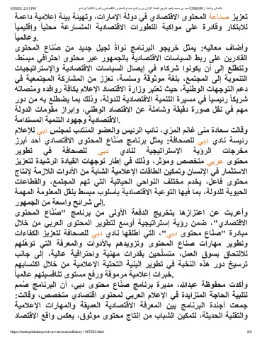 ﺔﻤﻋاد ﺔﯿﻣﻼﻋإ ﺔﺌﯿﺑ ﺔﺌﯿﮭﺗو ،تارﺎﻣﻹا ﺔﻟود ﻲﻓ يدﺎﺼﺘﻗﻻا ىﻮﺘﺤﻤﻟا ﺔﻋﺎﻨﺻ ﺰﯾﺰﻌﺗ