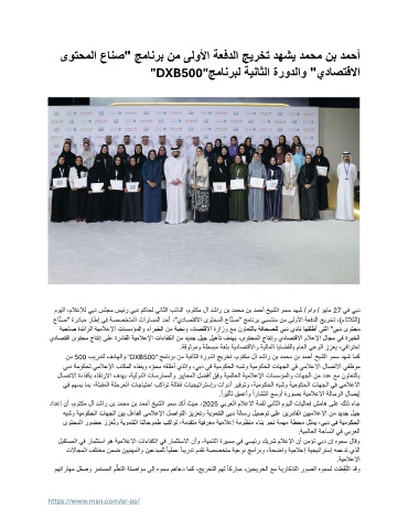 نم 500 بيردتل فداهلاو "DXB500" جمانرب نم ةيناثلا ةرودلا جيرخت ،موتكم لآ دشار نب دمحم نب دمحأ خيشلا ومس دهش امك