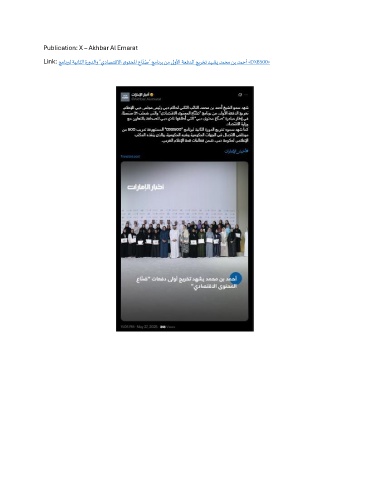 Publication: X – Akhbar Al Emarat ّ ُ Link: جمانربل ةيناثلا ةرودلاو "يداصتقلاا ىوتحلما عانص" جمانرب نم ىلولأا ةعفدلا جيرخت دهشي دمحم نب دمحأ «DXB500»