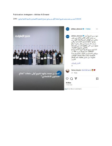 Publication: Instagram – Akhbar Al Emarat Link: " جمانربل ةيناثلا ةرودلاو "يداصتقلاا ىوتحلما عانص" جمانرب نم ىلولأا ةعفدلا جيرخت دهشي دمحم نب دمحأDXB500"