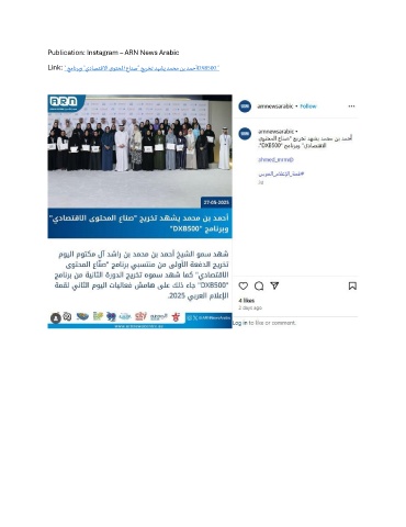 Publication: Instagram – ARN News Arabic Link: " جمانربو "يداصتقلاا ىوتحلما عانص" جيرخت دهشي دمحم نب دمحأDXB500."