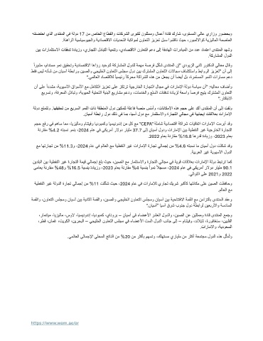 عم اهتراجت نم % 11.3 و ، 2024 ماع يف ملاعلا عم ةيطفنلا ريغ تاراملإا ةراجت يلامجإ نم % 4.6 هتبسن ام نايسآ لود تلكش دقو