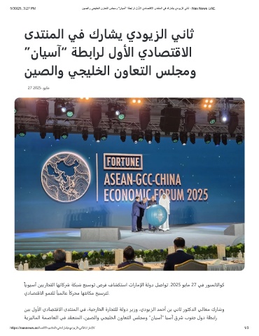 5/30/25, 3:27 PM نﯾﺻﻟاو ﻲﺟﯾﻠﺧﻟا نوﺎﻌﺗﻟا سﻠﺟﻣو "نﺎﯾﺳآ" ﺔطﺑارﻟ لوﻷا يدﺎﺻﺗﻗﻻا ىدﺗﻧﻣﻟا ﻲﻓ كرﺎﺷﯾ يدوﯾزﻟا ﻲﻧﺎﺛ - Nas News UAE