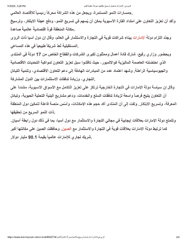 ىؤرﻟا تاذ ﺎﯾﺳآ لود نإ لﺎﻗو ،مﻟﺎﻌﻟا ﻲﻓ رﺎﻣﺛﺗﺳﻻاو ةرﺎﺟﺗﻟا ﻲﻓ ﺔﯾوﻗ تﺎﻛارﺷ ءﺎﻧﺑﺑ تارﺎﻣﻹا ﺔﻟود مازﺗﻟا دّدﺟو