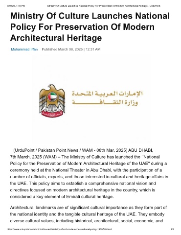 3/10/25, 1:46 PM Ministry Of Culture Launches National Policy For Preservation Of Modern Architectural Heritage - UrduPoint