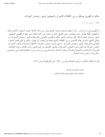 3/17/25, 2:34 PM كرﺎﺑﻣﻟا نﺎﺿﻣر رﮭﺷﺑ نﯾﺋﻧﮭﻣﻟاو خوﯾﺷﻟاو ﺔﻓﺎﻘﺛﻟا رﯾزو لﺑﻘﺗﺳﯾ نﯾوﯾﻘﻟا مأ مﻛﺎﺣ | تارﺎﻣﻹا ءﺎﺑﻧأ ﺔﻟﺎﻛو