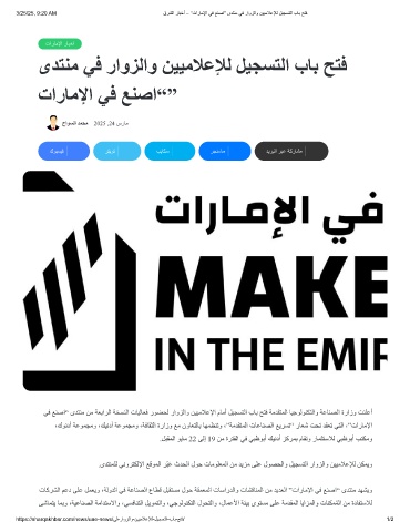 3/25/25, 9:20 AM قرﺷﻟا رﺎﺑﺧأ – ”تارﺎﻣﻹا ﻲﻓ ﻊﻧﺻا“ ىدﺗﻧﻣ ﻲﻓ راوزﻟاو نﯾﯾﻣﻼﻋﻺﻟ لﯾﺟﺳﺗﻟا بﺎﺑ ﺢﺗﻓ
