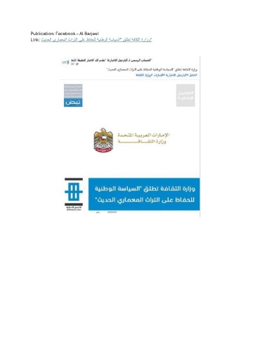 Publication: Facebook – Al Barjeel Link: ثيدحلا يرامعملا ثارتلا ىلع ظافحلل ةينطولا ةسايسلا" قلطت ةفاقثلا ةرازو"
