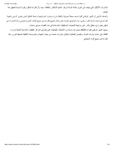 3/13/25, 10:13 AM تﻧﯾوﺑ ودرأ - 2025 ةءارﻘﻠﻟ ﻲﻧطوﻟا رﮭﺷﻟا ﺔطﺷﻧأ ﺞﻣﺎﻧرﺑ نﻋ نﻠﻌﺗ ﺔﻓﺎﻘﺛﻟا ةرازو