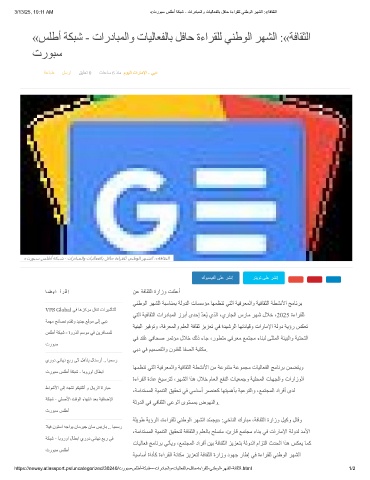 3/13/25, 10:11 AM «تروﺑﺳ سﻠطأ ﺔﻛﺑﺷ - تاردﺎﺑﻣﻟاو تﺎﯾﻟﺎﻌﻔﻟﺎﺑ لﻓﺎﺣ ةءارﻘﻠﻟ ﻲﻧطوﻟا رﮭﺷﻟا :«ﺔﻓﺎﻘﺛﻟا
