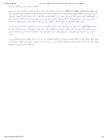 3/13/25, 10:09 AM رﺎﺑﺧﻸﻟ رﺎﺑﺳﻣ – 2025 ةءارﻘﻠﻟ ﻲﻧطوﻟا رﮭﺷﻠﻟ ﺔﯾﻓرﻌﻣﻟاو ﺔﯾﻓﺎﻘﺛﻟا ﺔطﺷﻧﻷا ﺞﻣﺎﻧرﺑ نﻋ نﻠﻌﺗ ﺔﻓﺎﻘﺛﻟا ةرازو
