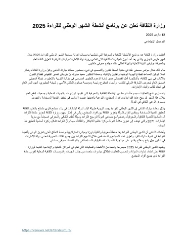 2025 ةءارقلل ينطولا رهشلا ةطشنأ جمانرب نع نلعت ةفاقثلا ةرازو
