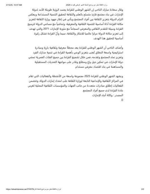3/13/25, 10:07 AM 2025 ةءارﻘﻠﻟ ﻲﻧطوﻟا رﮭﺷﻟا ﺔطﺷﻧأ ﺞﻣﺎﻧرﺑ نﻋ نﻠﻌﺗ ﺔﻓﺎﻘﺛﻟا ةرازو