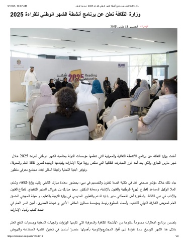 3/13/25, 10:07 AM نطوﻟا ةدﯾرﺟ › 2025 ةءارﻘﻠﻟ ﻲﻧطوﻟا رﮭﺷﻟا ﺔطﺷﻧأ ﺞﻣﺎﻧرﺑ نﻋ نﻠﻌﺗ ﺔﻓﺎﻘﺛﻟا ةرازو