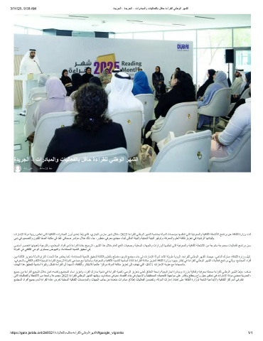 تارﺎﻣﻹا ﺔﻟود ﺔﯾؤر ﺲﻜﻌﺗ ﻲﺘﻟا ﺔﯿﻓﺎﻘﺜﻟا تاردﺎﺒﻤﻟا زﺮﺑأ ىﺪﺣإ ّﺪﻌُﯾ يﺬﻟا ،يرﺎﺠﻟا سرﺎﻣ ﺮﮭﺷ لﻼﺧ ،2025 ةءاﺮﻘﻠﻟ ﻲﻨطﻮﻟا ﺮﮭﺸﻟا ﺔﺒﺳﺎﻨﻤﺑ ﺔﻟوﺪﻟا تﺎﺴﺳﺆﻣ ﺎﮭﻤﻈﻨﺗ ﻲﺘﻟا ﺔﯿﻓﺮﻌﻤﻟاو ﺔﯿﻓﺎﻘﺜﻟا ﺔﻄﺸﻧﻷا ﺞﻣﺎﻧﺮﺑ ﻦﻋ ﺔﻓﺎﻘﺜﻟا ةرازو ﺖﻨﻠﻋ