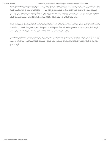 3/14/25, 9:58 AM “2025 ةءارﻘﻠﻟ ﻲﻧطوﻟا رﮭﺷﻟا ﺔﺑﺳﺎﻧﻣﺑ ﺔﯾﻓﺎﻘﺛﻟا ﺔطﺷﻧﻷا ﺞﻣﺎﻧرﺑ ﻖﻠطﺗ ﺔﯾﺗارﺎﻣﻹا ”ﺔﻓﺎﻘﺛﻟا ةرازو – SEYYAHA