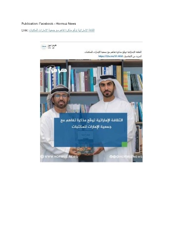 Publication: Facebook – Hormuz News Link: تابتكملل تاراملإا ةيعمج عم مهافت ةركذم ع ّ قوت ةيتاراملإا ةفاقثلا