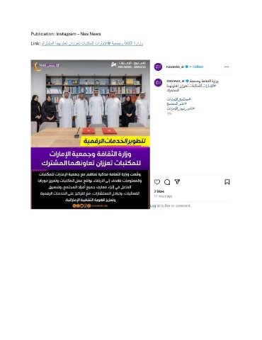 Publication: Instagram – Nas News Link: كرتشملا امهنواعت ناززعت تابتكملل تاراملإا# ةيعمجو ةفاقثلا ةرازو