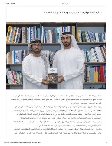 تﺎﺑﺗﻛﻣﻠﻟ تارﺎﻣﻹا ﺔﯾﻌﻣﺟ ﻊﻣ مھﺎﻔﺗ ةرﻛذﻣ ﻊﻗوﺗ ﺔﻓﺎﻘﺛﻟا ةرازو