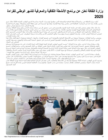 ةءارﻘﻠﻟ ﻲﻧطوﻟا رﮭﺷﻠﻟ ﺔﯾﻓرﻌﻣﻟاو ﺔﯾﻓﺎﻘﺛﻟا ﺔطﺷﻧﻷا ﺞﻣﺎﻧرﺑ نﻋ نﻠﻌﺗ ﺔﻓﺎﻘﺛﻟا ةرازو