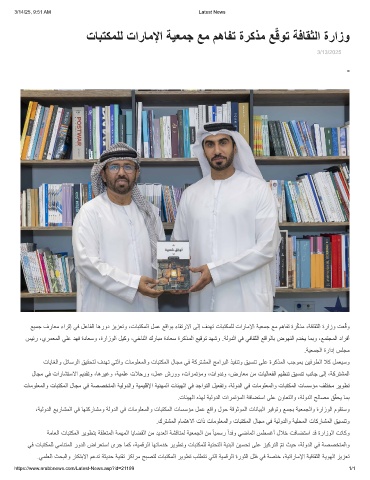 تﺎﺑﺗﻛﻣﻠﻟ تارﺎﻣﻹا ﺔﯾﻌﻣﺟ ﻊﻣ مھﺎﻔﺗ ةرﻛذﻣ ﻊﻗوﺗ ﺔﻓﺎﻘﺛﻟا ةرازو