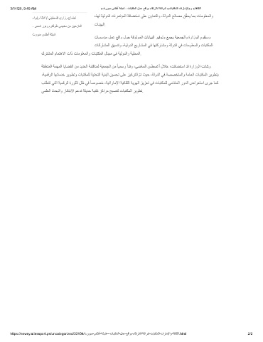 ﺔﻘﻠﻌﺘﻤﻟا ﺔﻤﮭﻤﻟا ﺎﯾﺎﻀﻘﻟا ﻦﻣ ﺪﯾﺪﻌﻟا ﺔﺸﻗﺎﻨﻤﻟ ﺔﯿﻌﻤﺠﻟا ﻦﻣ ً ﺎﯿﻤﺳر ًاﺪﻓو ،ﻲﺿﺎﻤﻟا ﺲﻄﺴﻏأ لﻼﺧ ،ﺖﻓﺎﻀﺘﺳا ﺪﻗ ةرازﻮﻟا ﺖﻧﺎﻛو