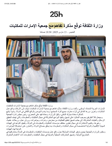 3/14/25, 9:46 AM 25 – تﺎﺑﺗﻛﻣﻠﻟ تارﺎﻣﻹا ﺔﯾﻌﻣﺟ ﻊﻣ مھﺎﻔﺗ ةرﻛذﻣ ﻊ ّ ﻗوﺗ ﺔﻓﺎﻘﺛﻟا ةرازوH